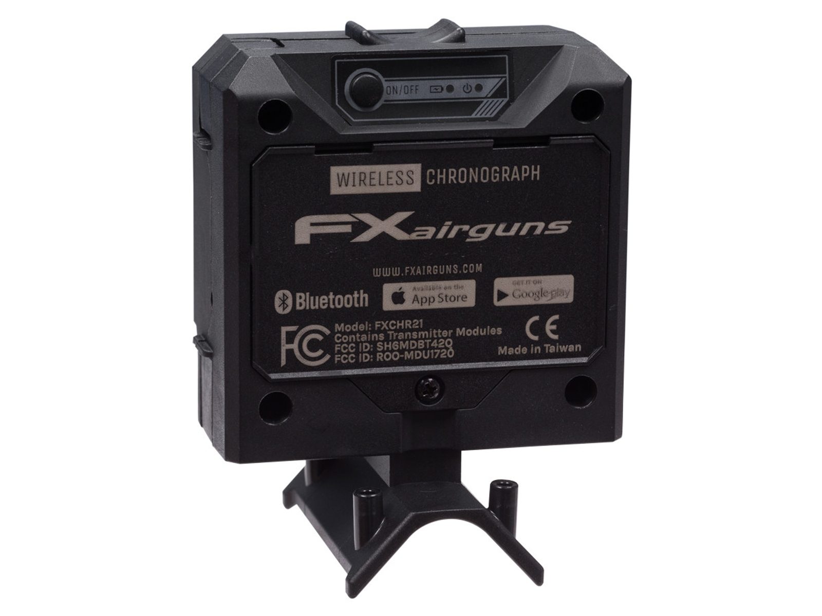 Bezdrátové kapesní chrono FX Radar Pocket Chronograph. Bezdrátové kapesní chrono FX využívá k měření rychlosti Dopplerův jev a jedná se tedy o radar a není tak závislý na světelných podmínkách. Radar se ovládá pomocí aplikace v telefonu (Android, IOS), která je zadarmo ke stažení. K napájení radaru jsou potřeba tři baterie AAA.