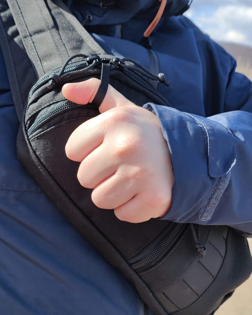 Elastický držák na zbraň je součástí tašky.