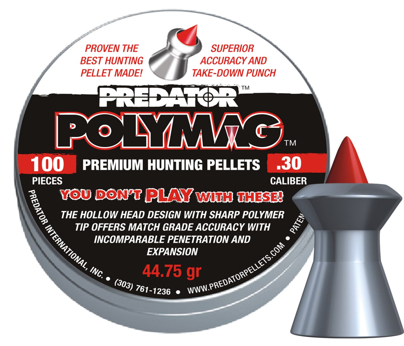Oblíbené lovecké diabolky ve světě, převážně v USA s precizní výrobou JSB. Predator PolyMag 100ks cal. 7,62mm jsou speciální diabolky, které spojující výhody špičatých diabolek typu straton a diabolek s dutinkou. Špička diabolek Predator PolyMag je z polymeru čímž se zjednoduší vstup diabolky do cíle a uplatní maximální výstup díky dutině v diabolce.