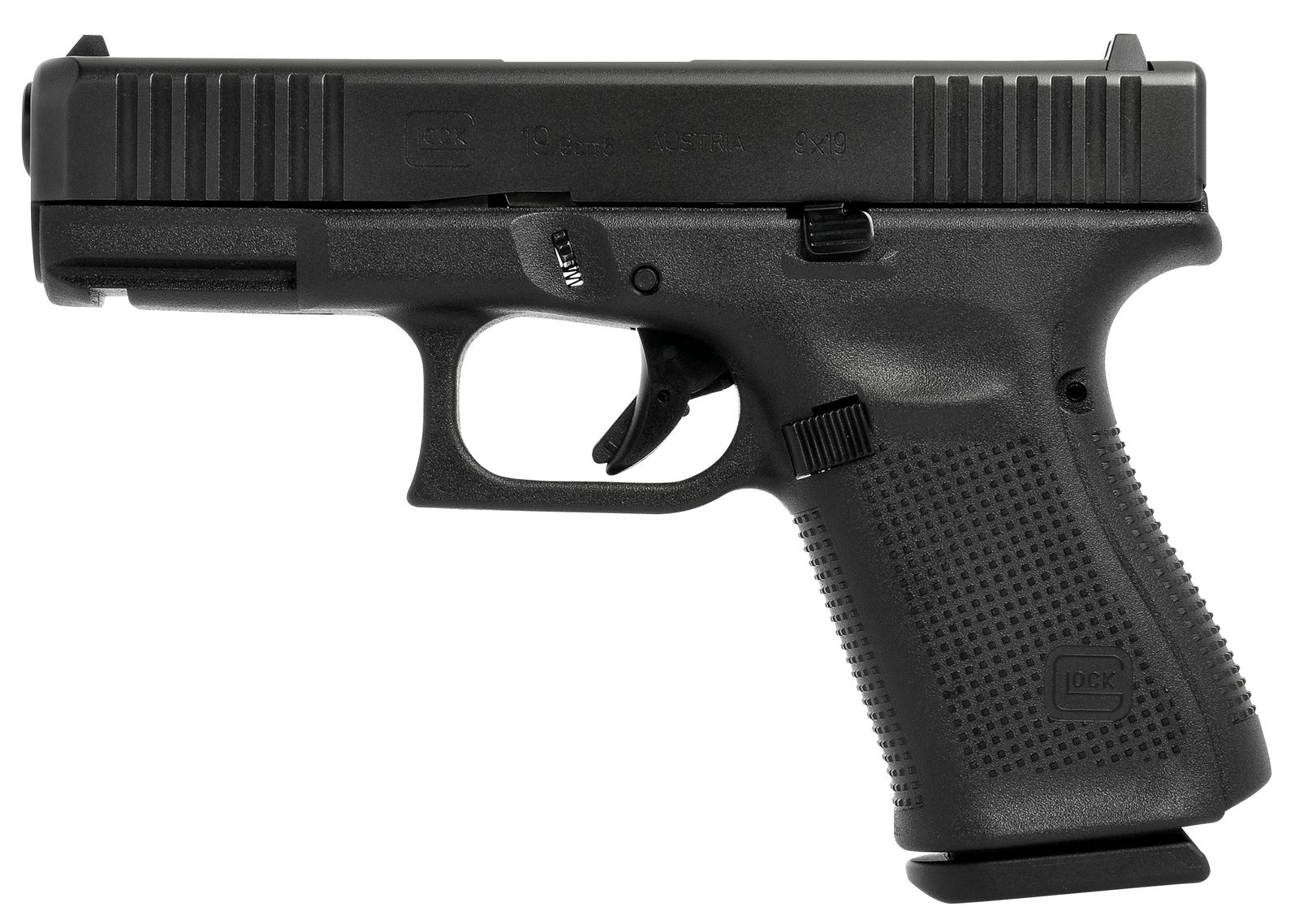 Pistole GLOCK 19 Gen. 5 s dvouřadým zásobníkem je v ráži 9x19. Pistole je snad nejčastější volbou střelců pro denní nošení a sebeobranu. Standardně jsou pistole Glock dodávány v sadě s 2 ks zásobníků na 15 nábojů. Dále je dodáván s kufříkem na zbraň, základním čištěním a výměnnými hřbety s bobřím ocasem o dvou rozdílných šířkách aby sedly každé ruce (výměnný dlouhý pin a nástroj pro výměnu hřbetů). Model 19 je častou volbou střelců, kteří chtějí spolehlivou a pohodlnou zbraň pro sebeobranu a zájmovou střelbu na střelnici. Zbraň má služební rozměry (policejnívelikost pistole - Compact) a nízkou hmotnost.