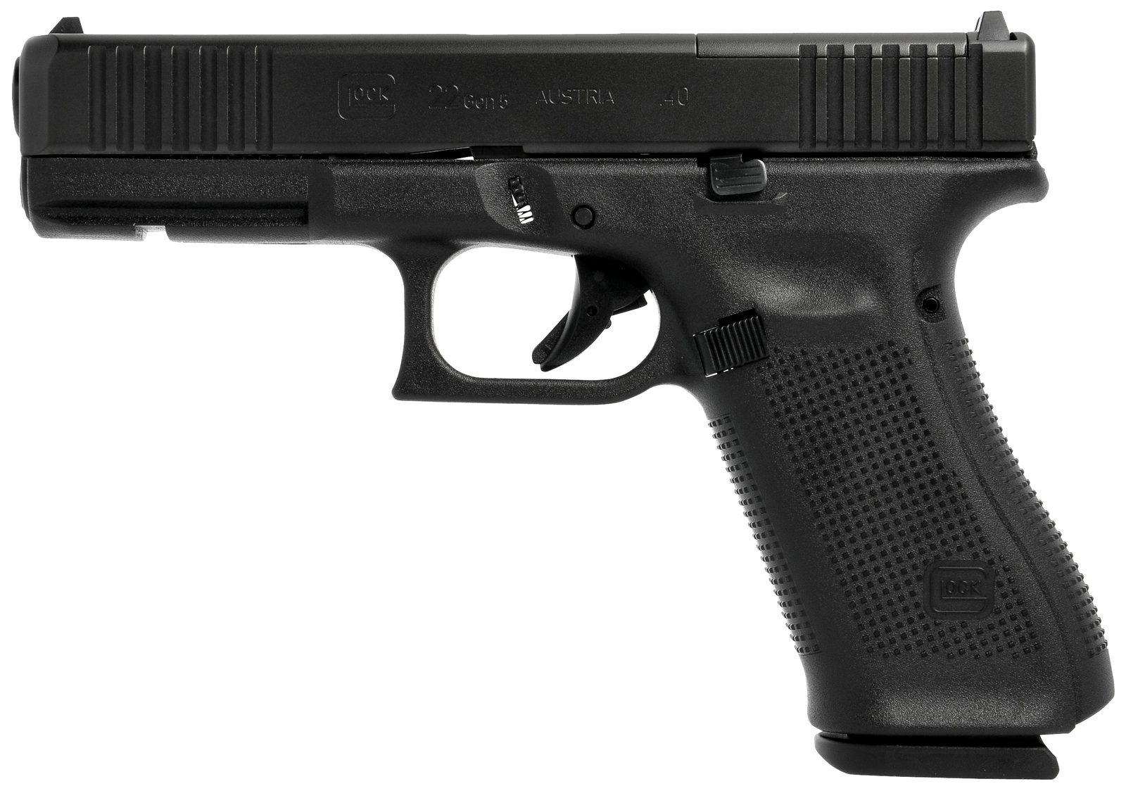 Pistole GLOCK 22 Gen. 5 s dvouřadým zásobníkem je v ráži .40 SW. Pistole je vhodná pro denní nošení a terčovou střelbu. Standardně jsou pistole Glock dodávány v sadě s 2 ks zásobníky na 15 nábojů. Dále je dodáván s kufříkem na zbraň, základním čištěním a výměnnými hřbety s bobřím ocasem o dvou rozdílných šířkách aby sedly každé ruce (výměnný dlouhý pin a nástroj pro výměnu hřbetů). Model 22 je častou volbou střelců, kteří chtějí spolehlivou a pohodlnou zbraň pro sebeobranu a zájmovou střelbu na střelnici. Zbraň má služební rozměry (vojenská velikost pistole - Full Size) a nízkou hmotnost.