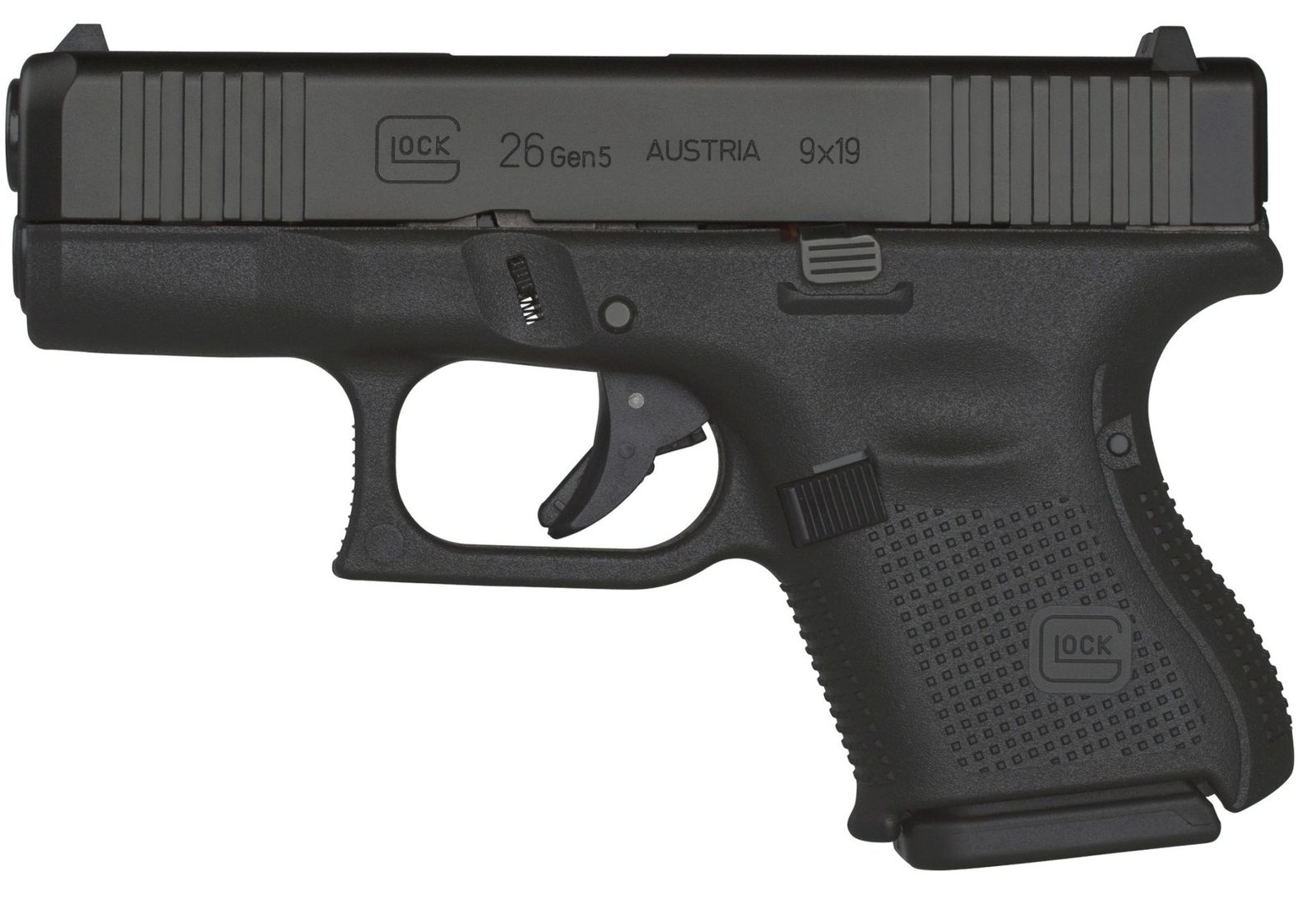 Pistole GLOCK 26 Gen. 5 FS s dvouřadým zásobníkem je v ráži 9x19. Pistole je snad nejčastější volbou střelců pro denní nošení a sebeobranu. Standardně jsou pistole Glock dodávány v sadě s 2 ks zásobníky na 10 nábojů. Dále je dodáván s kufříkem na zbraň, základním čištěním a výměnnými hřbety s bobřím ocasem o dvou rozdílných šířkách aby sedly každé ruce a 2 výměnnými hřbety pro rozšíření rukojeti (výměnný dlouhý pin a nástroj pro výměnu hřbetů). Model 26 je častou volbou střelců, kteří chtějí spolehlivou a pohodlnou zbraň pro sebeobranu. Zbraň má kompaktní rozměry (velikost pistole - Subcompact) a nízkou hmotnost. Je tak ideální pro skryté nošení.