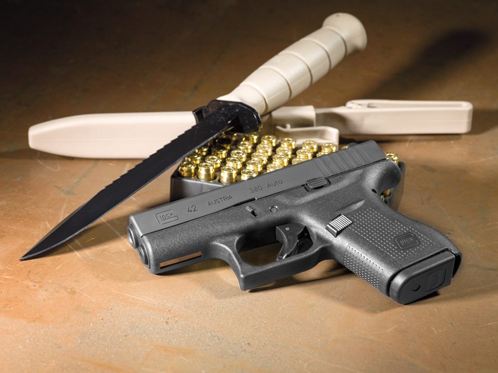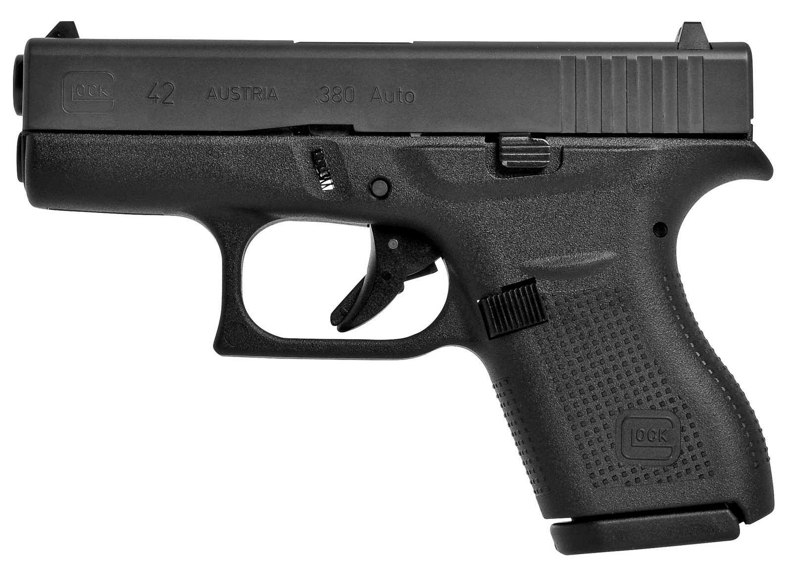 Pistole GLOCK 42 s jednořadým zásobníkem je v ráži 9 mm Browning. Pistole je vhodná pro skryté nošení. Standardně jsou pistole Glock 42 dodávány v sadě s 2 ks zásobníků s prodlouženou botkou na 6 nábojů. Dále je dodáván kufřík na zbraň a základní čištění. Model 42 je častou volbou střelců, kteří chtějí kompaktní zbraň pro skryté a denní nošení. Zbraň má kompaktní rozměry a nízkou hmotnost. Tyto vlastnosti zajišťují snadné skrytí zbraně pod oblečením.