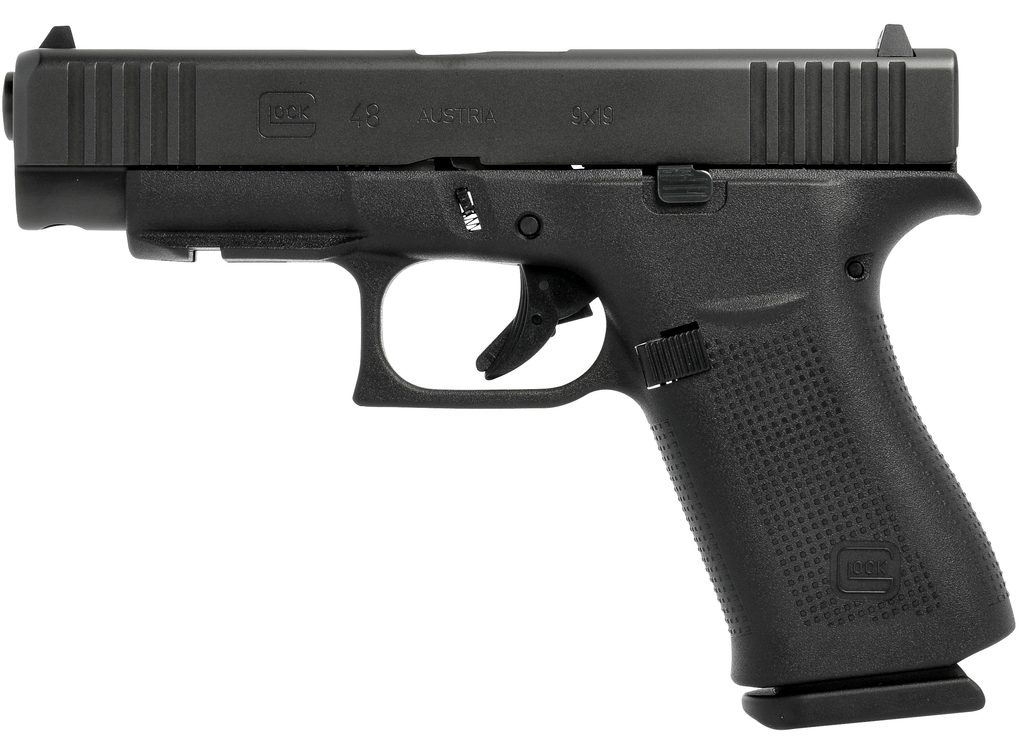 Pistole GLOCK 48 s dvouřadým zásobníkem je v ráži 9x19. Pistole je snad nejčastější volbou střelců pro denní nošení a sebeobranu. Standardně jsou pistole Glock dodávány v sadě s 2 ks zásobníky na 10 nábojů. Dále je dodáván s kufříkem na zbraň, základním čištěním. Model 48 je častou volbou střelců, kteří chtějí spolehlivou a pohodlnou zbraň pro sebeobranu. Zbraň má kompaktní rozměry (velikost pistole - Subcompact) a nízkou hmotnost. Je tak ideální pro skryté nošení. Tato varianta je o trochu širší než model 43 a rukojeť s hlavní/závěrem jsou stejně dlouhé jako u modelu 19.