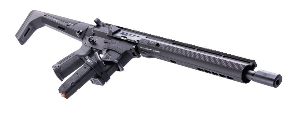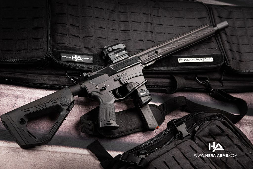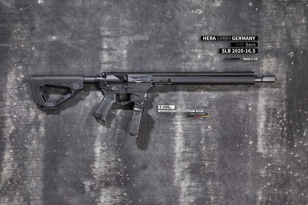 Kvalitní poloautomatická pistolová karabina německé firmy Hera Arms 9ers - s délkou hlavně 16,5". Ráže 9 mm Luger. Stoupání hlavně je 1/10. Zbraň je osazena montážní lištou weaver 22 mm pro umístění optického zařízení a jiného příslušenství nad hlaveň. Předpažbí je vybaveno montážním systémem typu key-mode. Hlaveň je osazena úsťovou brzdou PCC (sport) z produkce firmy Hera Arms. Pistolová rukojeť má krytý prostor v rukojeti pro příslušenství (baterie,...). Nastavitelná pažba. Zásobníky Glock 9 mm Luger (zbraň je také možné objednat s konverzí pro zásobníky Colt).