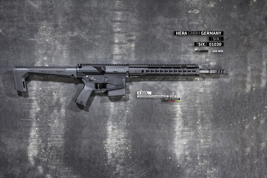 Kvalitní poloautomatická puška německé firmy Hera Arms 7SIX2R - typu AR-10 v ráži .308 Winchester s délkou hlavně 14,5". Stoupání hlavně je 1/11. Zbraň je osazena montážní lištou weaver 22 mm pro umístění optického zařízení a jiného příslušenství nad hlaveň. předpažbí je vybaveno montážním systémem typu key-mode. Hlaveň je osazena úsťovou brzdou CC (sport) z produkce firmy Hera Arms. Pistolová rukojeť má krytý prostor v rukojeti pro příslušenství (baterie,...). Pažba pevná typu A2.