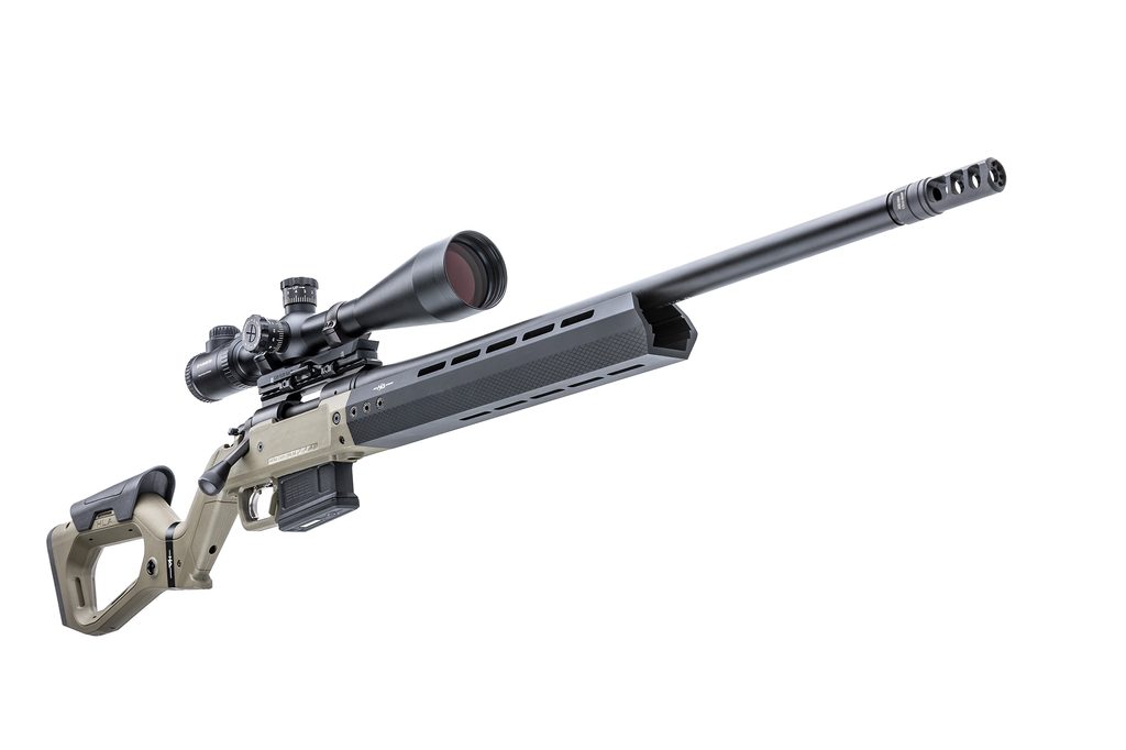 Systém H7 má také namontovanou lištu Picatinny a CC kompenzátor. Dodává se v pevném kufru s číselným zámkem.
