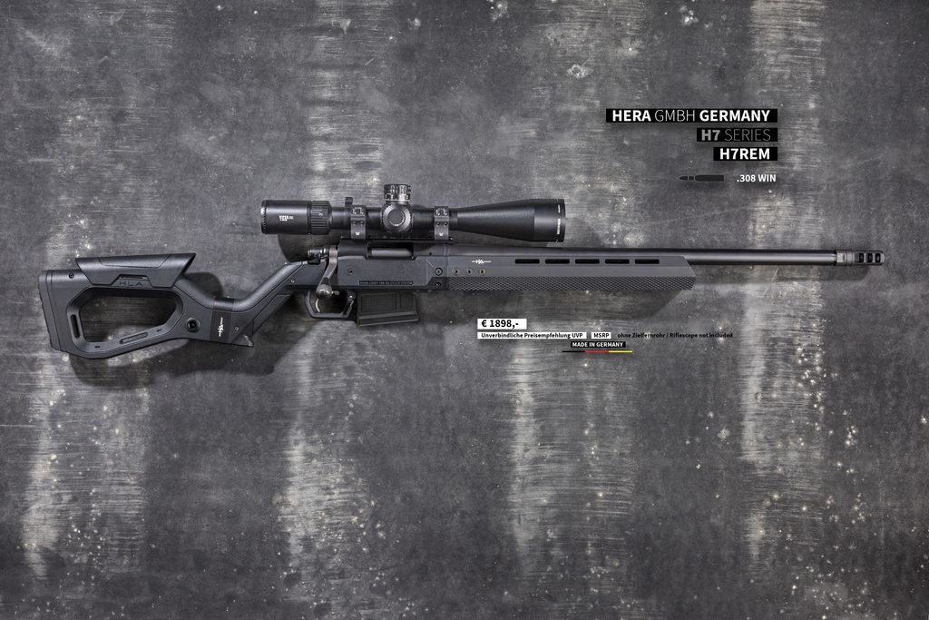 Kvalitní opakovací kulovnice německé firmy Hera Arms H7 - s délkou hlavně 50,8 cm. Ráže .308 Winchester. Stoupání hlavně je 1/11. Zbraň je osazena montážní lištou weaver 22 mm pro umístění optického zařízení a jiného příslušenství nad závěr. Hlaveň je osazena úsťovou brzdou CC (sport) z produkce firmy Hera Arms. Barva písková.