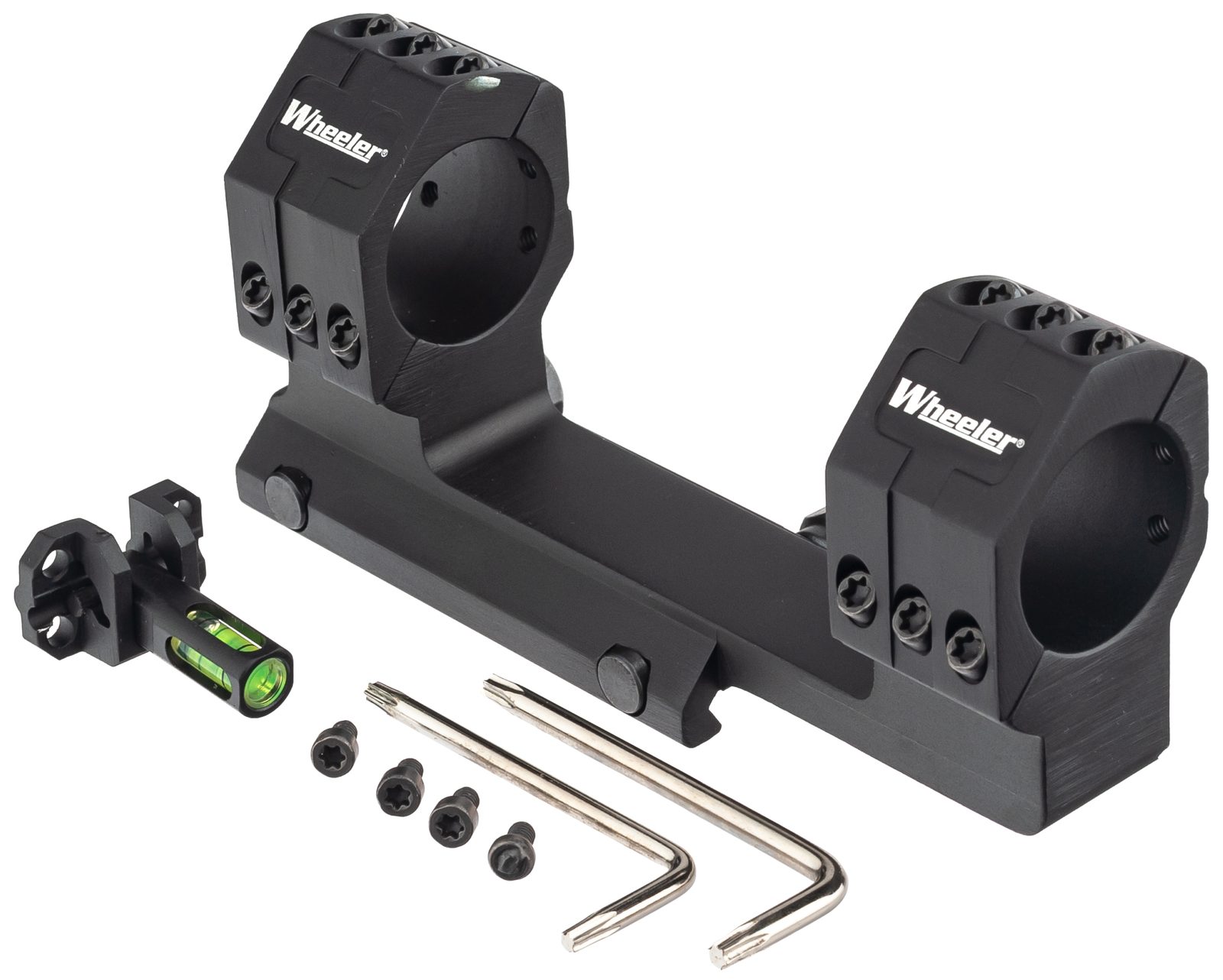 Kvalitní dvoudílná rychloupínací duralová montáž Wheeler Engineering vysoká na lištu weaver nebo picatinny (MIL-STD-1913) pro puškohledy o průměru tubusu 34 mm. Masivní a pevná konstrukce se šesti šrouby, montáž tak lze používat na všech zbraních bez omezení. Vyrobeno z jednoho kusu, povrch je matně černý, montáž má jištění proti posunu na montážní liště. Integrovaná vodováha pro snažší střelbu na dlouhou vzdálenost.