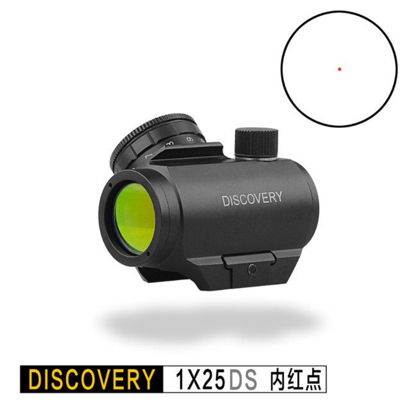 Kolimátor Discovery 1x25DS splňující vojenské standardy a určený do extrémních podmínek. Velikost záměrného bodu je 3MOA. Možnost nastavení intenzity podsvícení v 11ti krocích. Průměr objektivu 30mm. K napájení kolimátoru slouží baterie CR2032. Výška kolimátoru 60mm, délka 70mm a šířka 45mm.