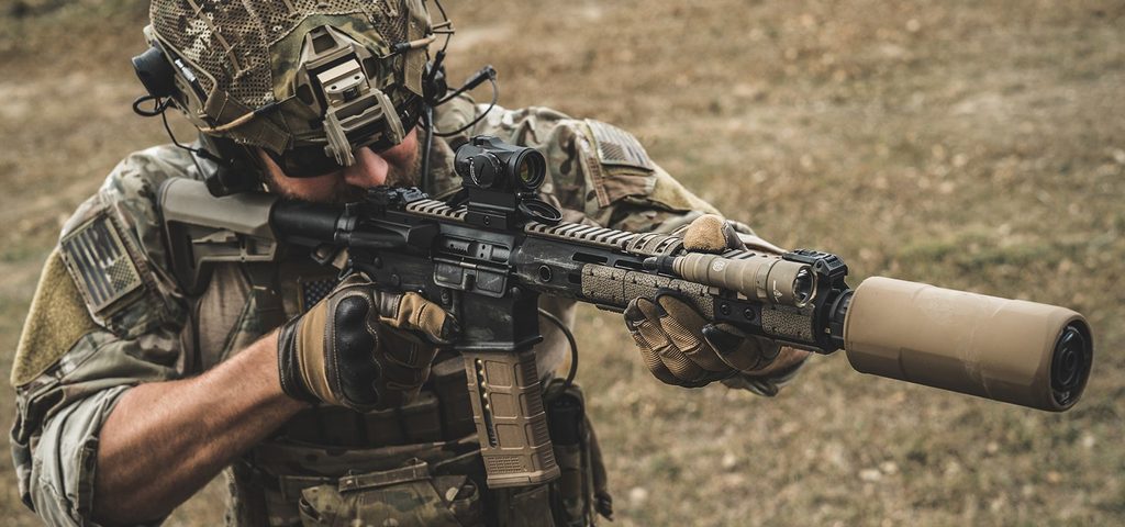 Optimalizováno pro kruhové tlumiče s vnějším průměrem 1,5”/3,81 cm s délkou těla přibližně 5,5”/13,97 cm (bez upevňovacího hardwaru / rozhraní), jako je například Surefire SOCOM556-RC2.