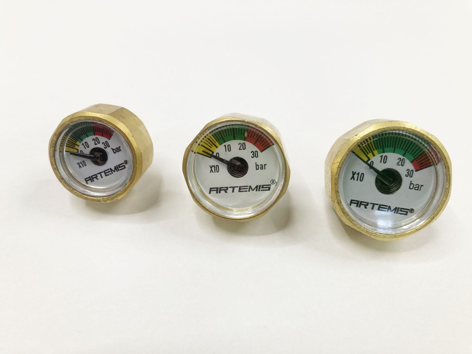 Manometr pro vzduchovky Snowpeak. Vnější průměr manometru 24 mm.