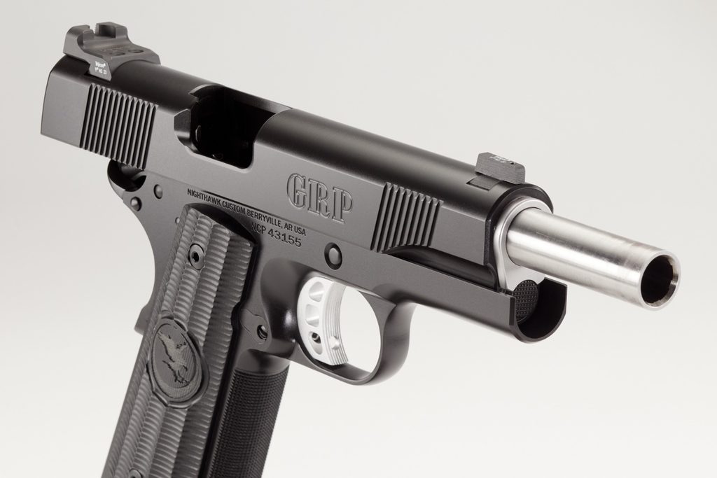 GRP může být pistolí základní úrovně u firmy Nighthawk Custom, ale stejně jako každá pistole Nighthawk Custom je každá část ručně opracovaná jediným zbrojířem. GRP využívá hrubé zdrsnění na přední a zadní straně závěru. Pistole je vybavena tritiovím hledím Heinie Ledge Straight Eight spárované s tritiovou muškou. GRP využívá všechny plně opracované díly a řemeslné zpracování, které patří do celé naší řady produktů Nighthawk Custom. Tento model, spolu se všemi ostatními, se řídí filozofií „One Gun, One Gunsmith“, což znamená, že zbraň je vyrobena jediným zbrojířem. Výrobce nemá montážní linku. Ale za to má skupinu mistrů puškařů, kteří začínají s krabicí záměrně nadrozměrných dílů a následně díly vytvaruje do podoby nejlepších pistolí 1911 na světě.