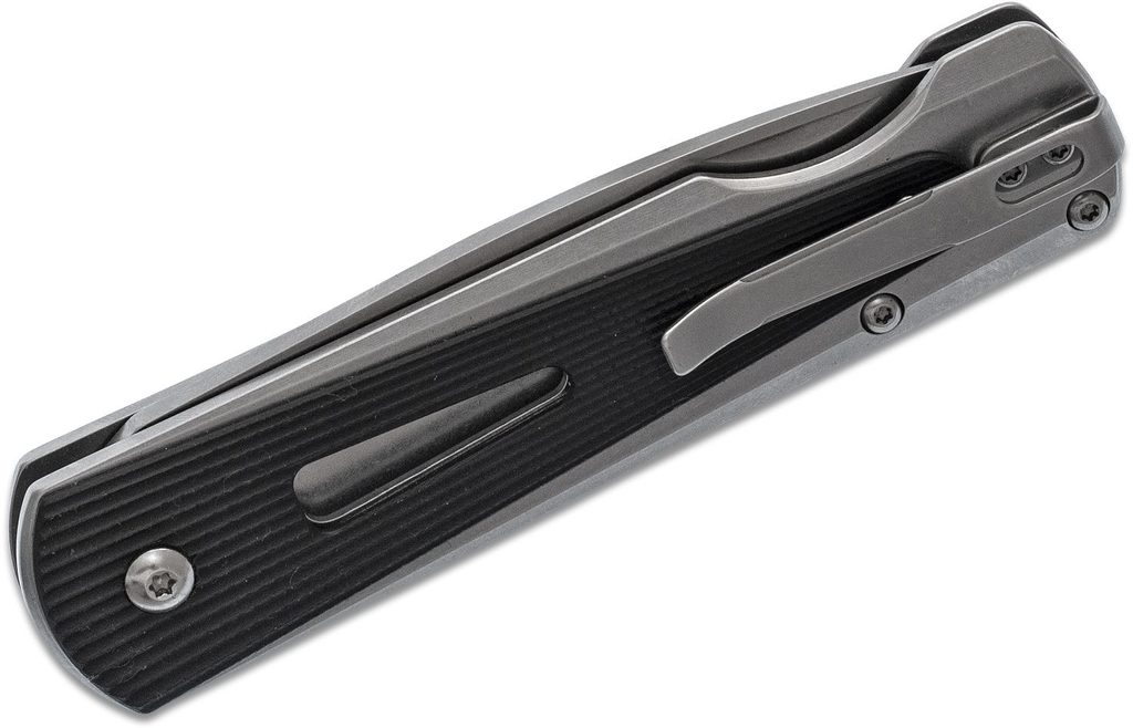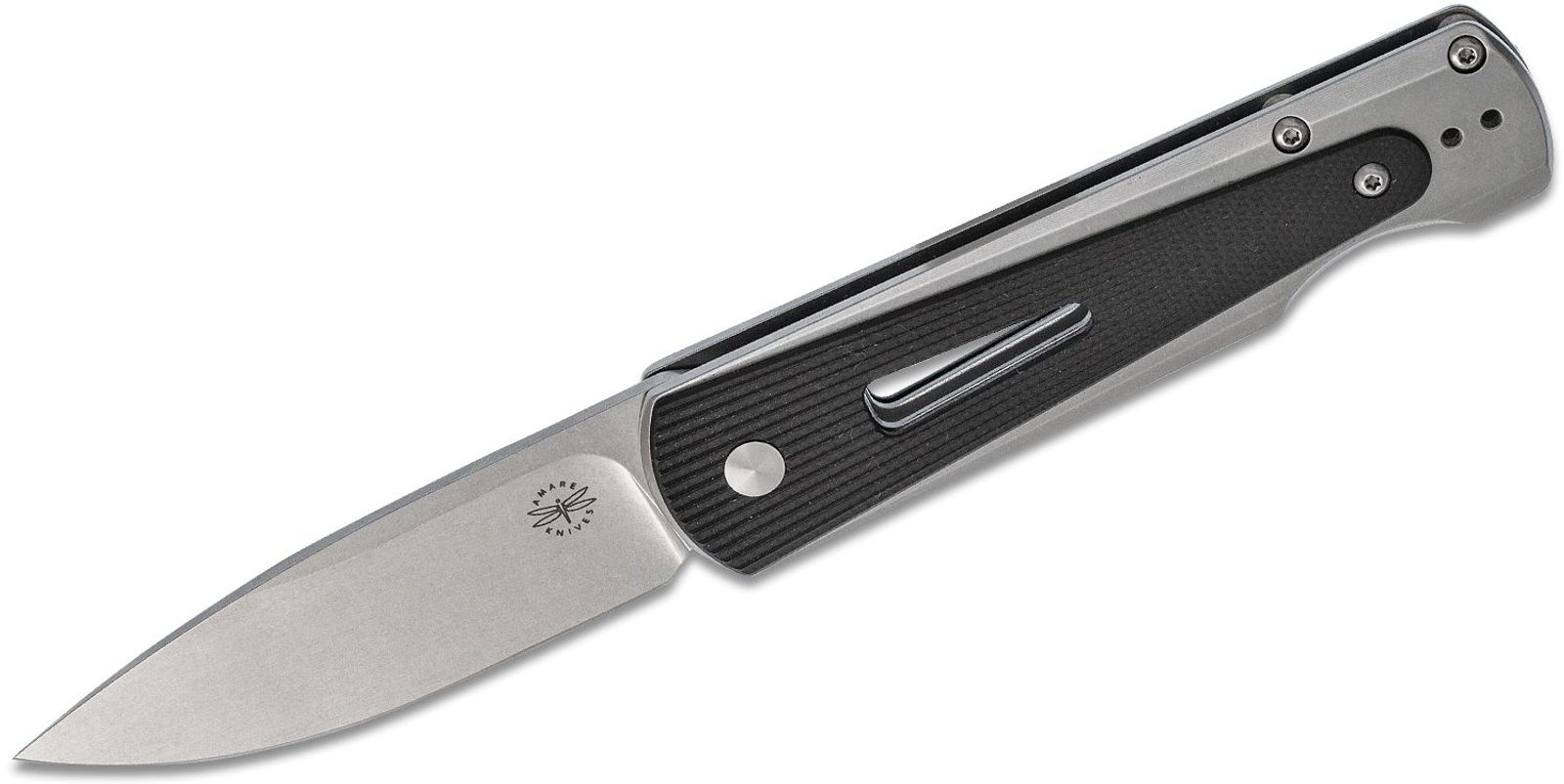 Zavírací nůž Amare Paragon Slipjoint s nově vyvinutým mechanismem Amare Knives "A-Joint" je speciální skládací nůž. Mechanismus "A-Joint" má několik výhod. Na jedné straně je klouzavý spojovací mechanismus spojen s kloubem pouze jednou dvojitou pružinou (tvar křídla vážky). Horní část, která drží čepel otevřenou, je díky své pevnosti materiálu vyšší než tlak, což umožňuje snadnější a extrémně rychlé otevření. Na druhé straně je délka čepele větší než u běžných systémů s kluzným řešením. Otevírání pomocí nehetníku představuje prostě klasiku. Délka čepele 82 mm, materiál čepele N690, tloušťka čepele 3,05 mm. Hmotnost 125 g, materiál rukojeti G10.