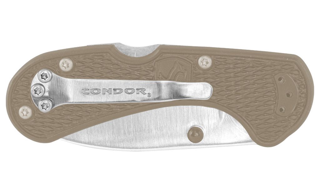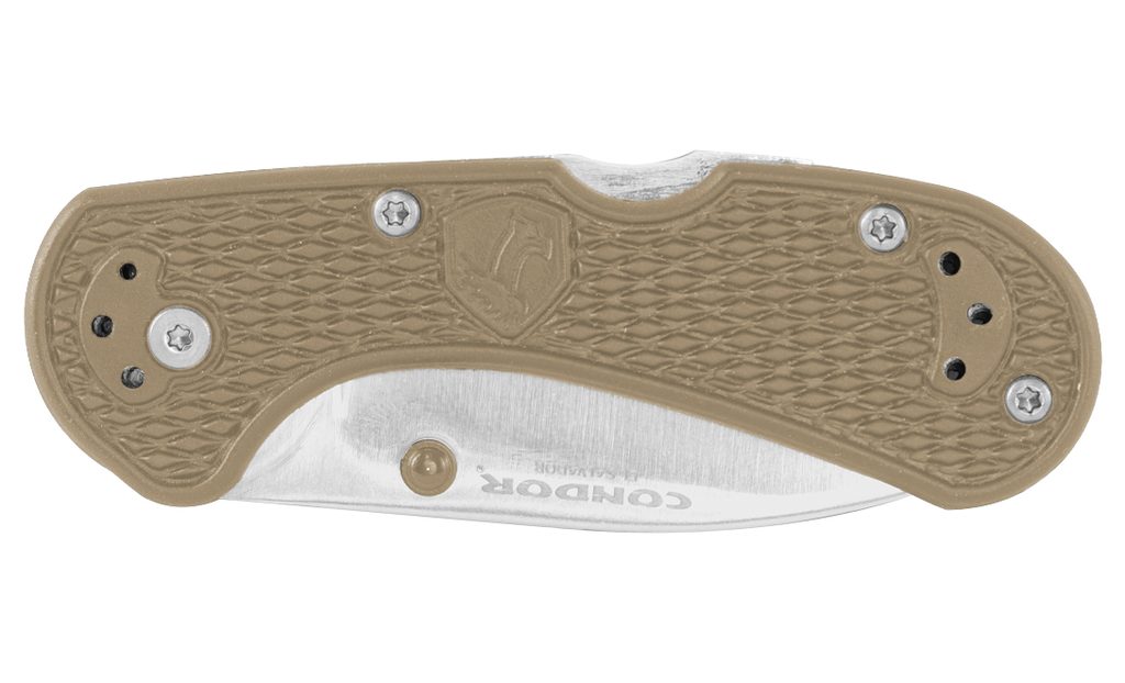 Nůž Condor Cadejo Drop Point Folder v barv desert má čepel o délce 68 mm,která je vyrobena z oceli sandvik 14C28N. Tloušťka čepele je 3 mm, celková délka nože je 172 mm. Nůž má rukojeť ze speciálního patentovaného high impact polypropylenu, který zajišťuje jak ergonomický, tak pevný a bezpečný úchop.