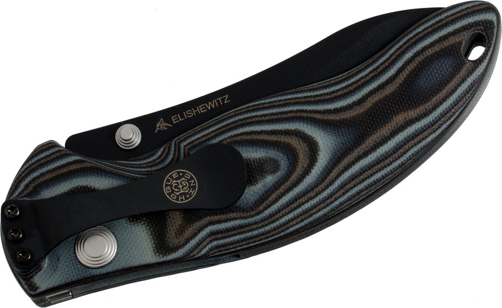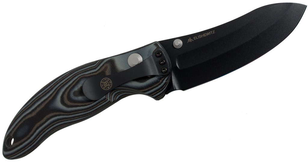 Zavírací nůž Hogue EX-04 4" Upswept G-10 Gray Lava, který navrhnul Allen Elishewitz. Čepel Upswept z kryogenicky ošetřené nerezové oceli 154CM (tvrdost 57-59 HRC) s povrchovou úpravou černý cerakote. Zámek PushButton s manuální pojistkou. Rukojeť z materiálu G-10 G-Mascus s texturou Mini Piranha. Pocket clip je vpravo, střenka obsahuje díru pro lanyard. Celková délka nože 203 mm, délka čepele 89 mm a délka rukojeti 130 mm. Vyrobeno v USA.