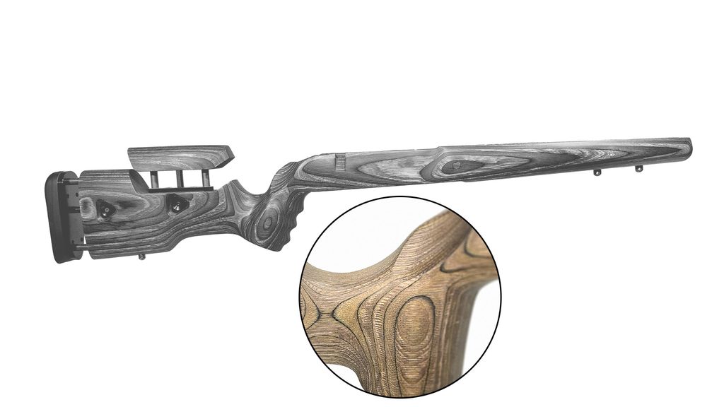Carro je hybridní pažba, která přináší moderní ergonomická vylepšení klasického loveckého stylu. Tato vynikající pažba je nádherně lehká, takže je skvělou volbou pro loveckou pušku. Design byl optimalizován pro střelbu z řady pozic.