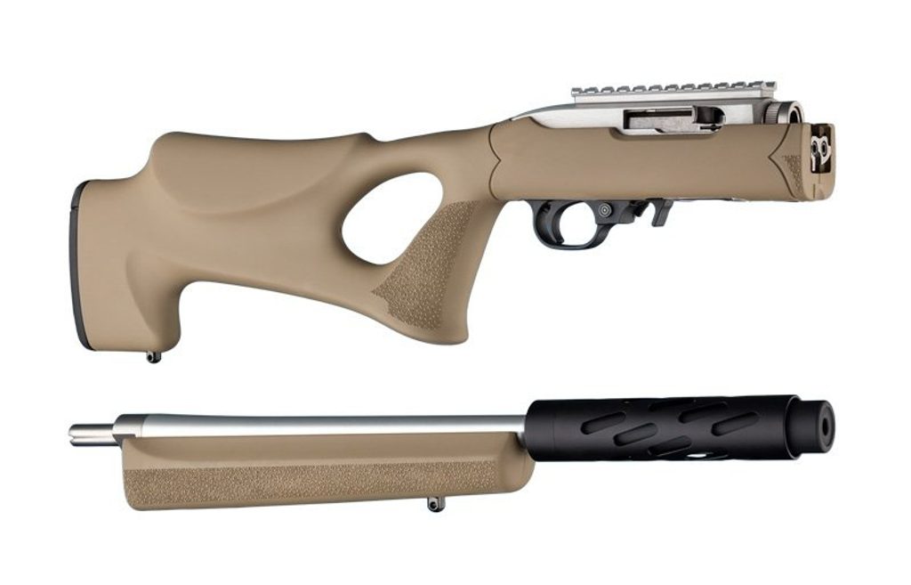 Pažby Hogue pro pušky Ruger 10/22 Take Down. Pažby jsou v provedení s otvorem thumbhole v pažbě pro standardní hlaveň