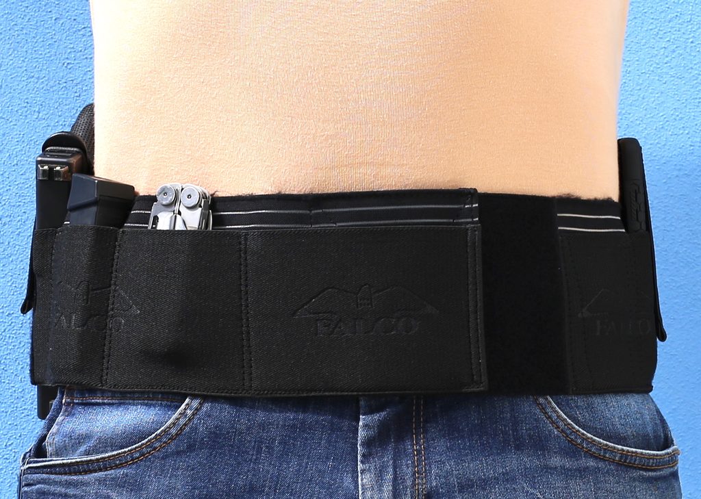 Elastický pás Falco - zbraň je v elastickém pásu velmi stabilní, přiléhá k tělu a pod oblečením není viditelná. Pás je vyroben z kombinace plného a prodyšného materiálu. Pás B102 nabízí ideální kompromis mezi pevností materiálu a komfortem nošení. Pás obsahuje pouzdro na zbraň , 2 zásobníky a doklady.