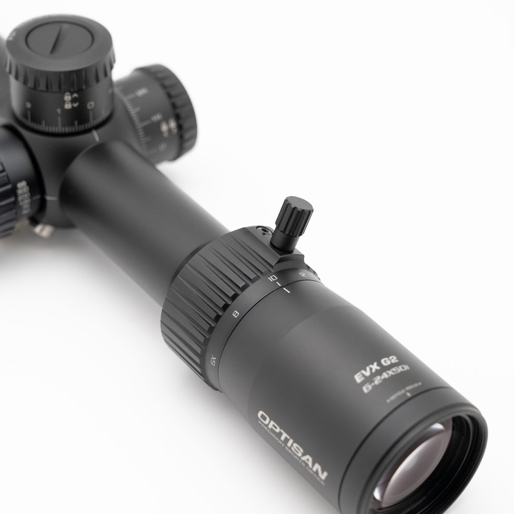 Puškohled Optisan EVX G2 6-24x50i SFP MRAD MHP10i z nové řady EVX Gen II je nástupcem dosluhující řady EVX. Kříž puškohledu je umístěný v druhé ohniskové ohniskové rovině (SFP - Secound Focal Plane, takže velikost kříže se nemění spolu se zvětšením). Optický a mechanický systém puškohledů EVX byl kompletně přepracován a tak puškohledy nabídnou o 25% větši zorné pole, lepší rozlišení a věrnější podání barev.