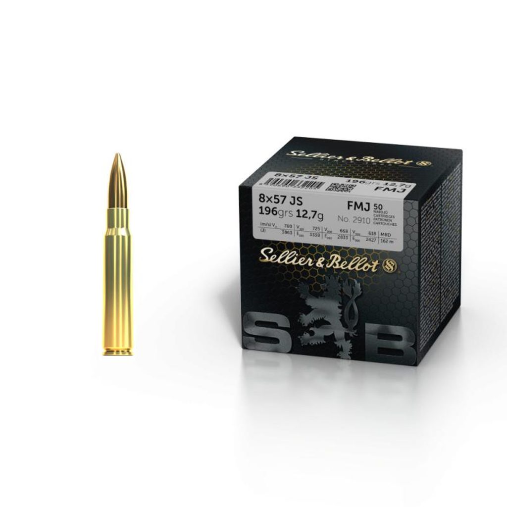 8x57JS se střelou FMJ od firmy S&B v balení po 50ks.