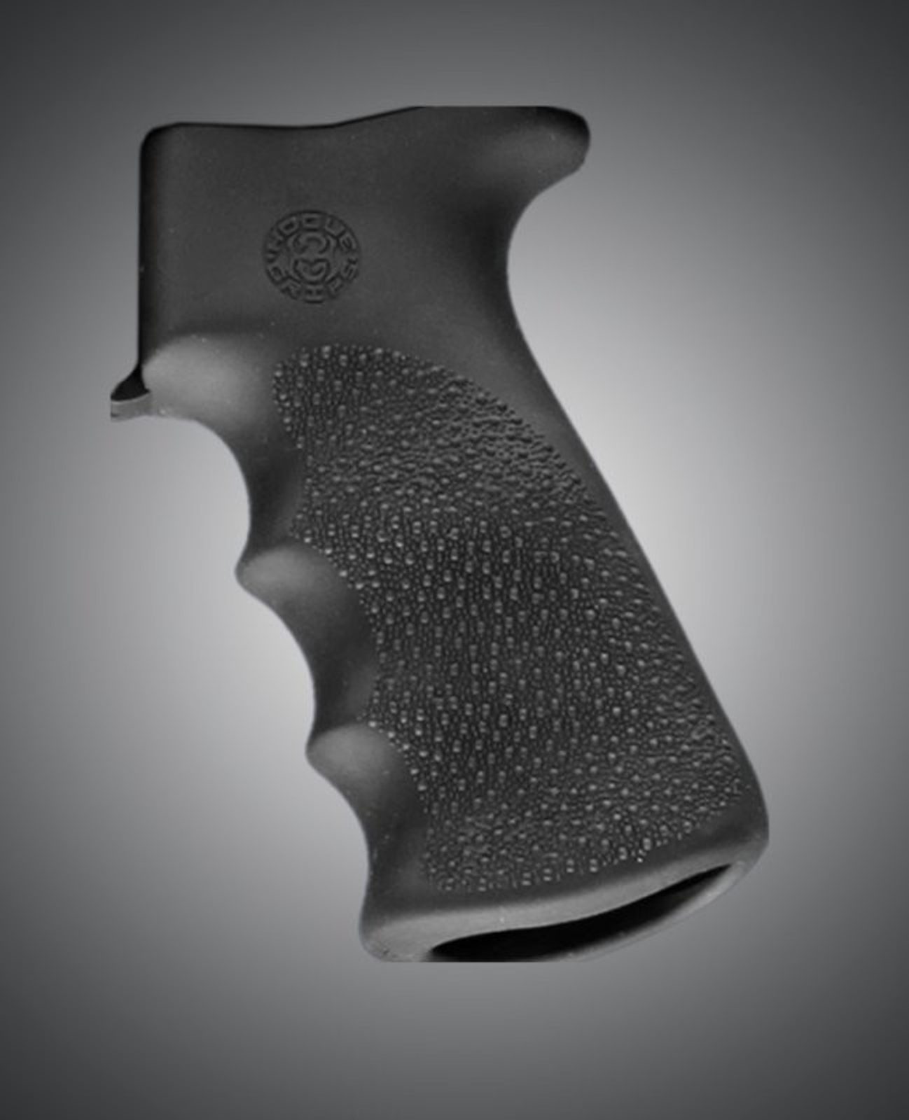 Gumové rukojeti Hogue jsou tvarovány z odolného syntetického kaučuku, který není houbovitý ani lepkavý, ale zároveň poskytuje měkký pocit pohlcující zpětný ráz bez ovlivnění přesnosti. Tento moderní kaučuk vyžaduje zcela odlišný proces lisování než běžný neopren, což má za následek mnohem lepší přilnavost. Flexibilita použitých materiálů a proces tvarování umožňuje vyrábět pryžové rukojeti s vlastnostmi, které fungují pro všechny zbraně.