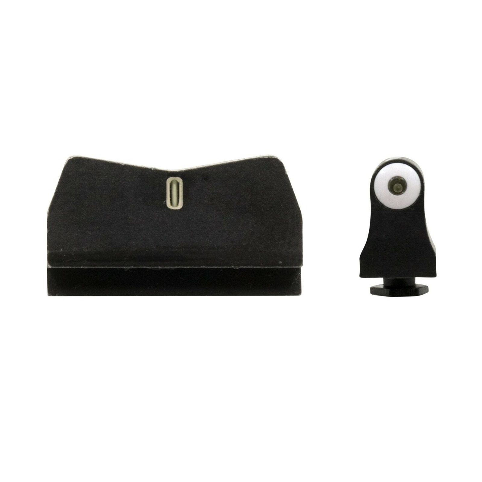 - Zadní hledí má bílý obrys s tritiovým středem