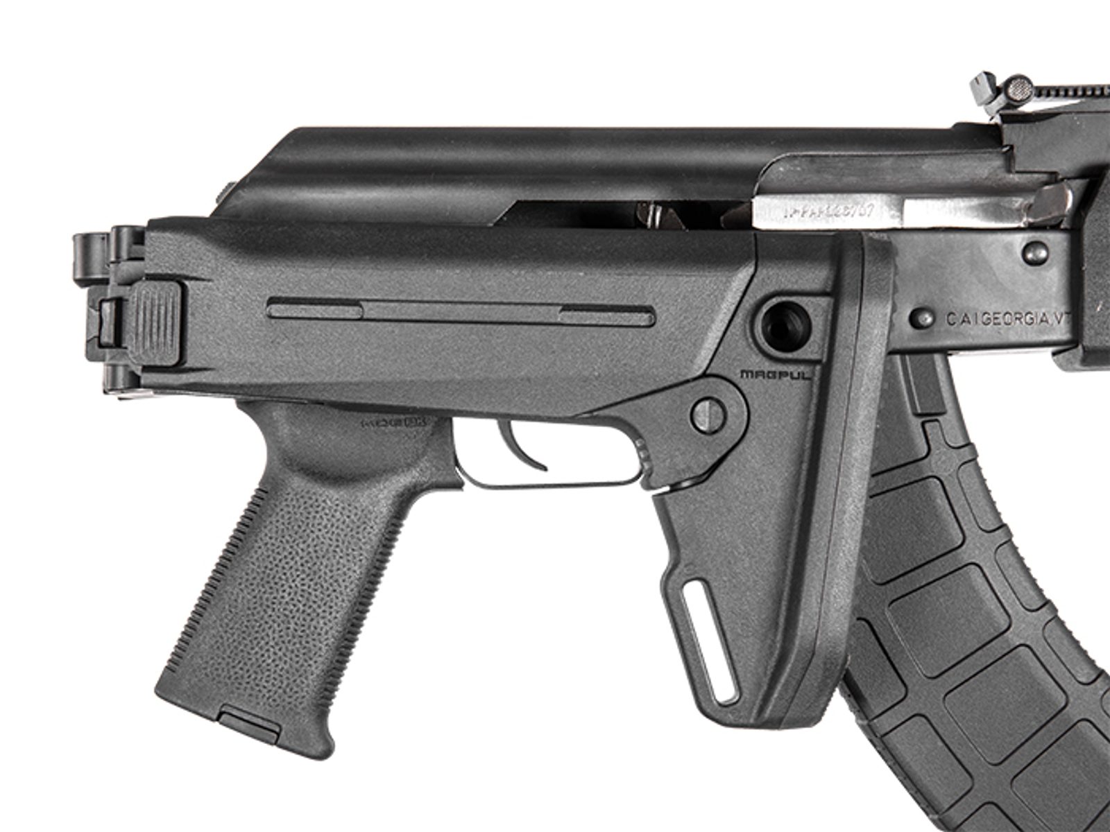 Magpul sklopná pažba s nastavitelnou délkou a lícnicí YUGO Zhukov-S Stock pro pušky s jugoslávským vzorem a s pevnou pažbou. Tato pažba umožňuje uživateli vyměnit tovární pažbu za tuto vysoce kvalitní sklopnou polymerovou pažbu. Blok závěsu se montuje přímo na unikátní zadní rozhraní pušek se vzorem Yugo s přiloženým hardwarem, který zajišťuje velmi robustní a spolehlivé uchycení.