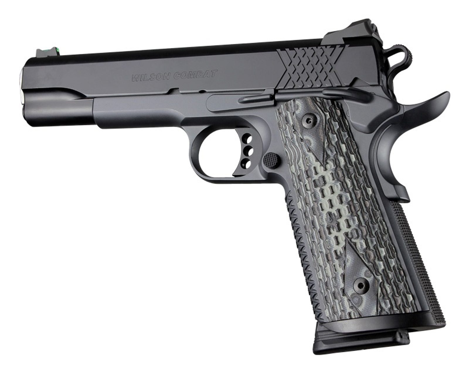Hogue střenky pro pistole typu 1911 Officers materiál G10, Techwell zásobníková šachta, povrchová úprava chainlink