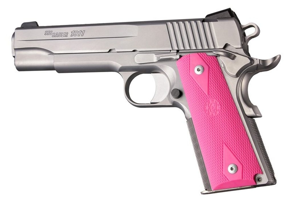 - Hogue tvaruje své syntetické rukojeti tak aby odpovídaly ortopedickému tvaru ruky s vybráním pro prsty a příjemným zdrsněním.