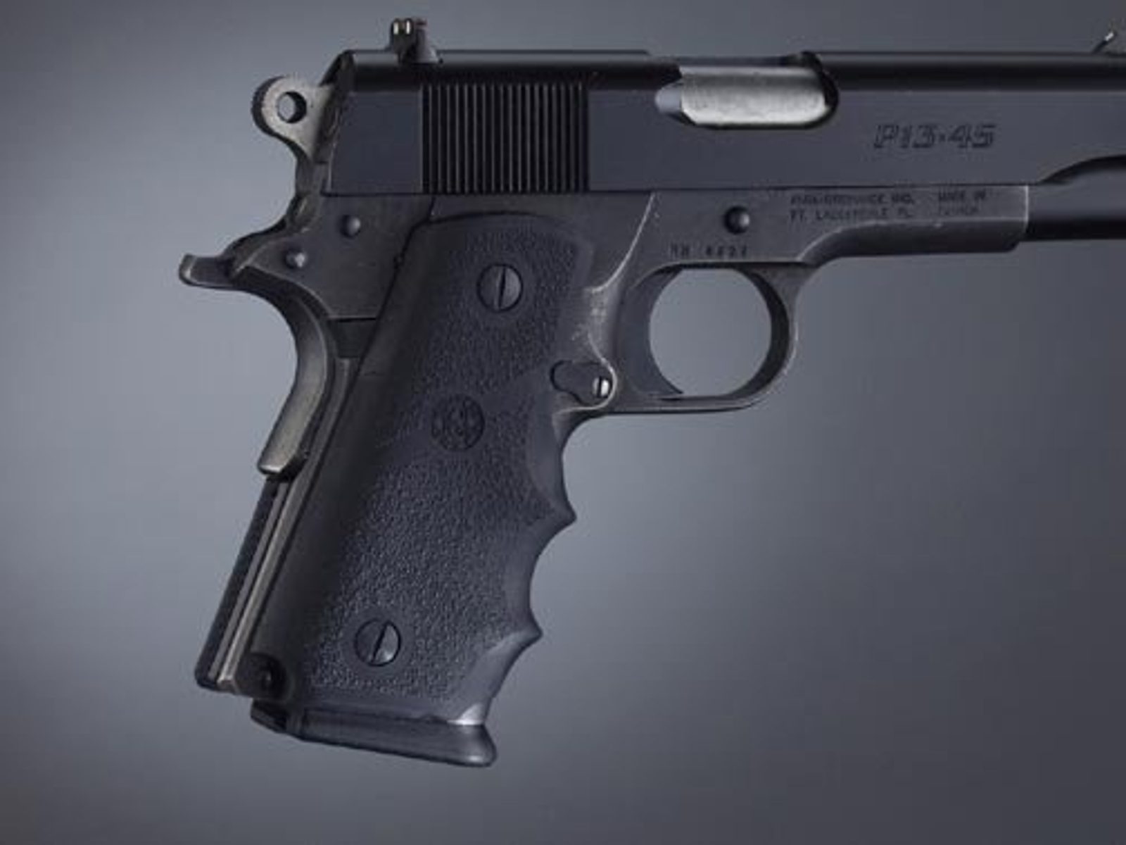 - Hogue tvaruje své syntetické rukojeti tak aby odpovídaly ortopedickému tvaru ruky s vybráním pro prsty a příjemným zdrsněním.