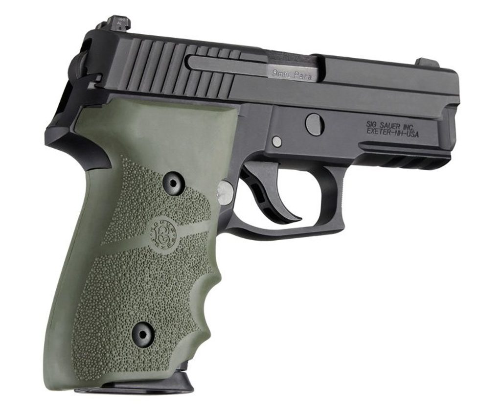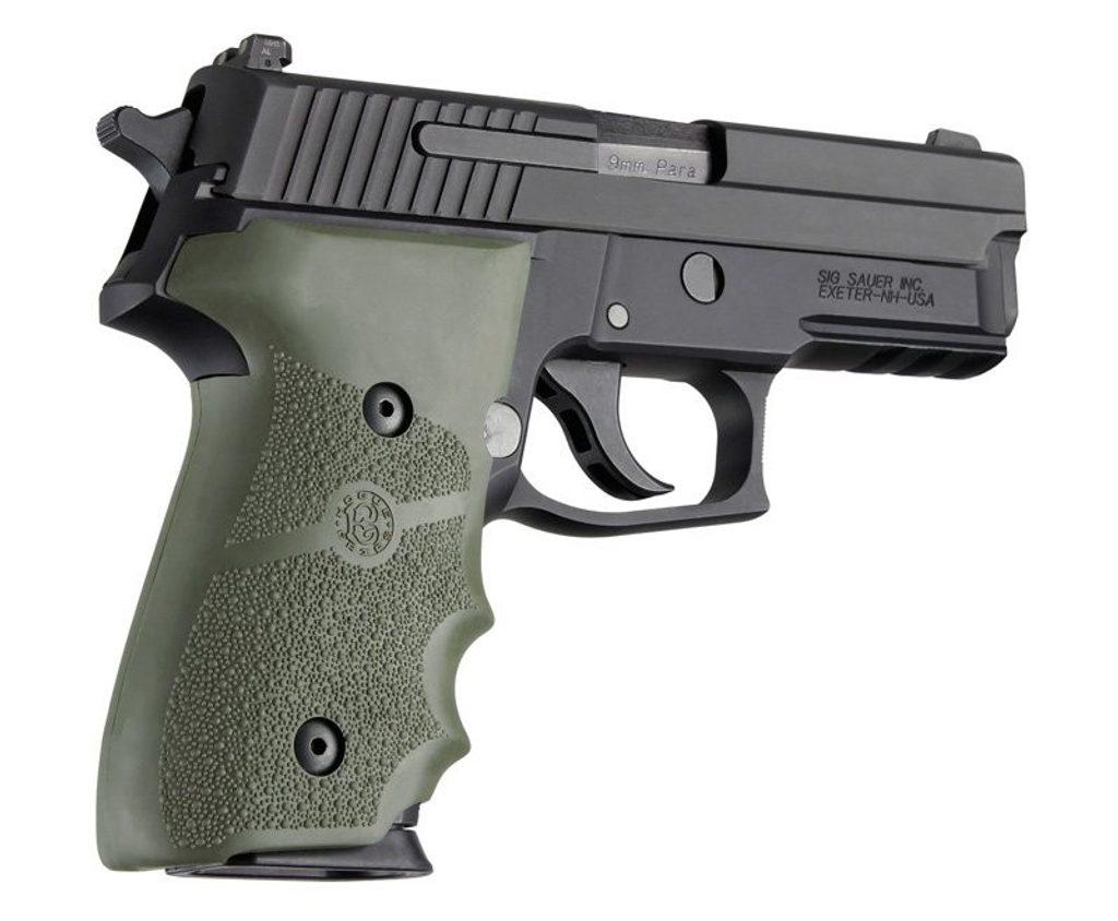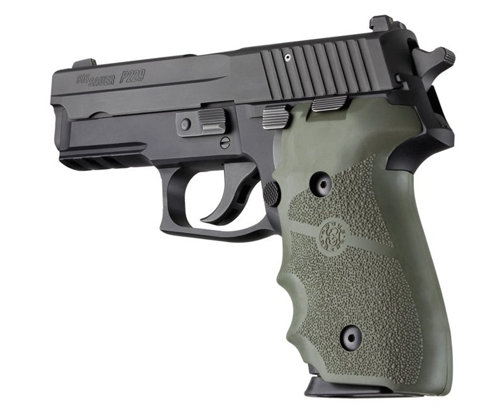 Hogue střenky pro pistole Sig Sauer P228/229 barvy OD Green, s vybrání pro prsty.
