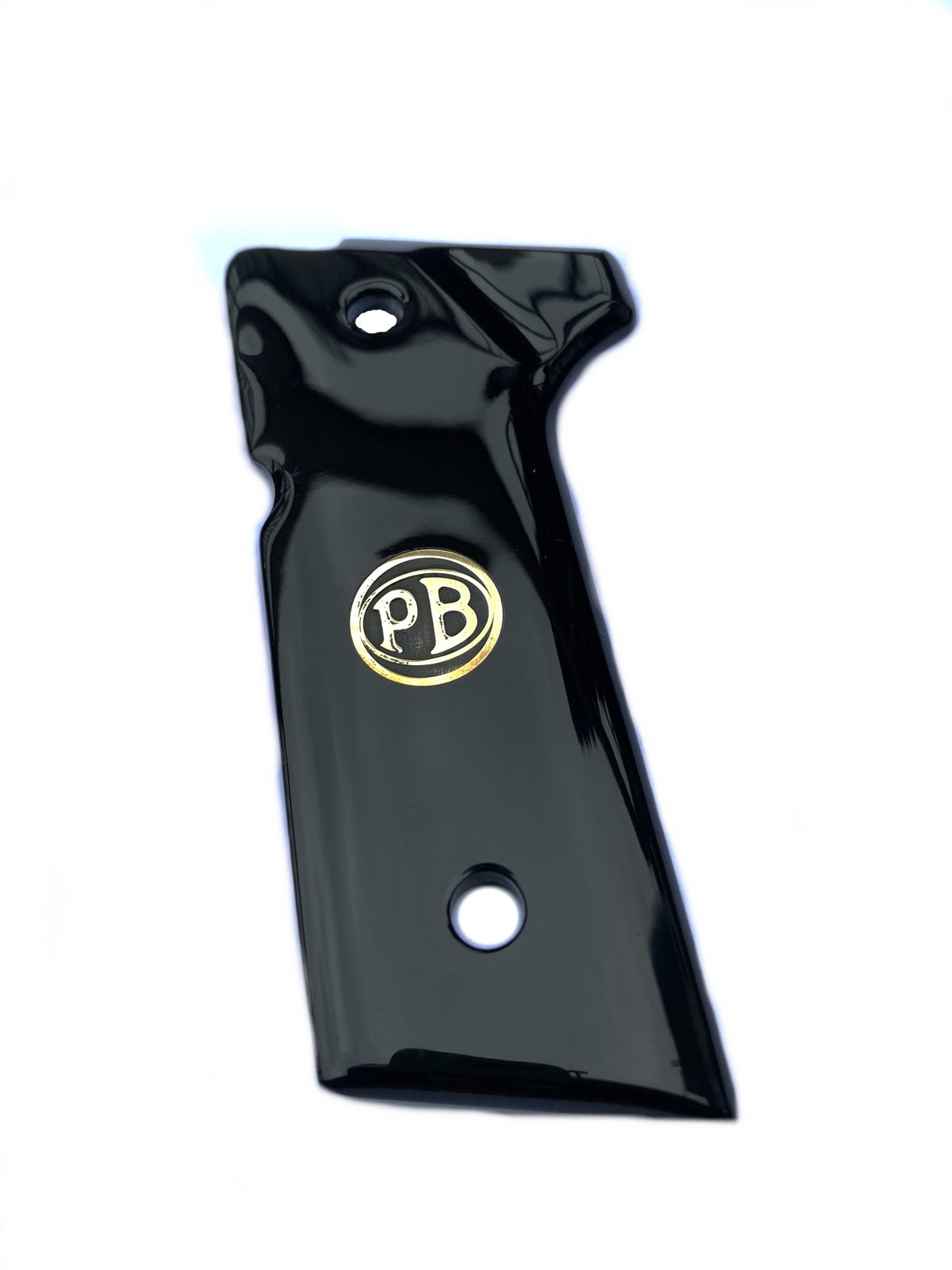 Střenky tureckého výrobce KSD pro pistole Beretta Vertec, černý akrylát s bronzovým logem.