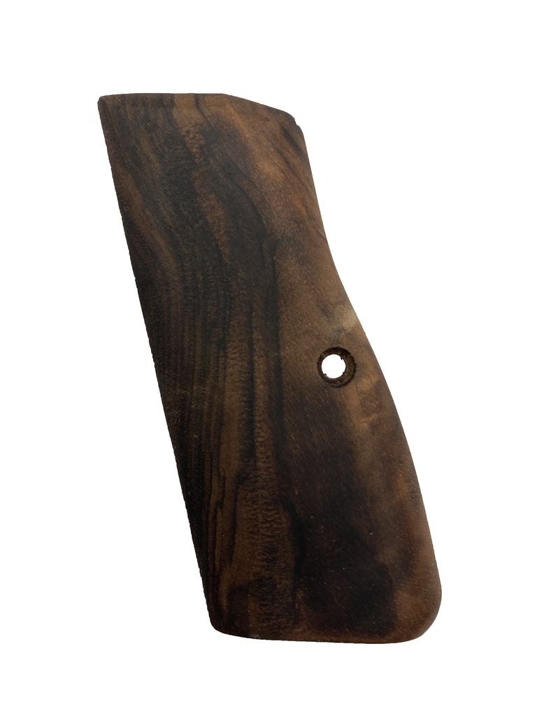 KSD rukojetí z tvrdého dřeva obsahuje oslnivou řadu exotických dřevin a vzorů, z nichž každá je jedinečným uměleckým dílem a jemným řemeslným zpracováním. Každá rukojeť je upravena dle požadavků: hladký leštěný povrch nebo zdrsněný povrch. Vaše rukojeť bude vyrobena z ušlechtilého tvrdého dřeva, které má vytvořit přirozené spojení mezi vámi a vaší oblíbenou zbraní.