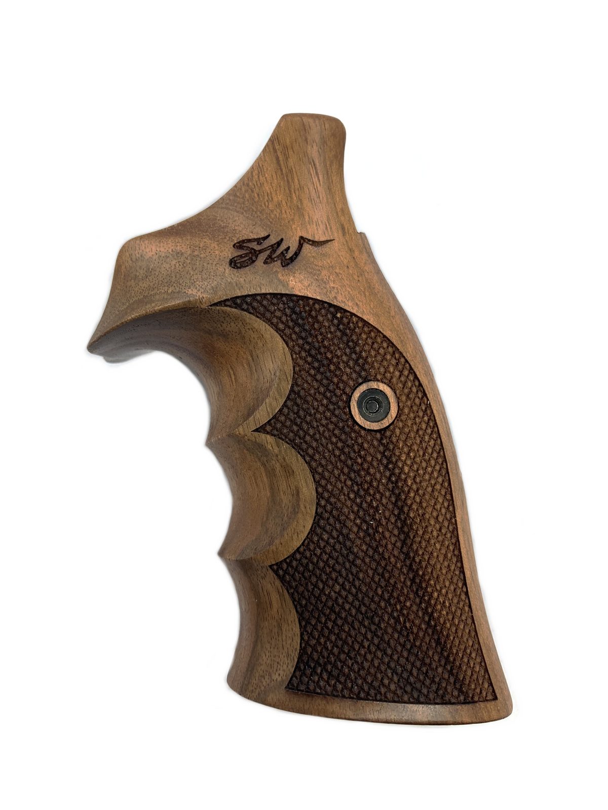 Střenky tureckého výrobce KSD pro revolvery Smith & Wesson K/L rám round butt turecký ořech s logem 10.