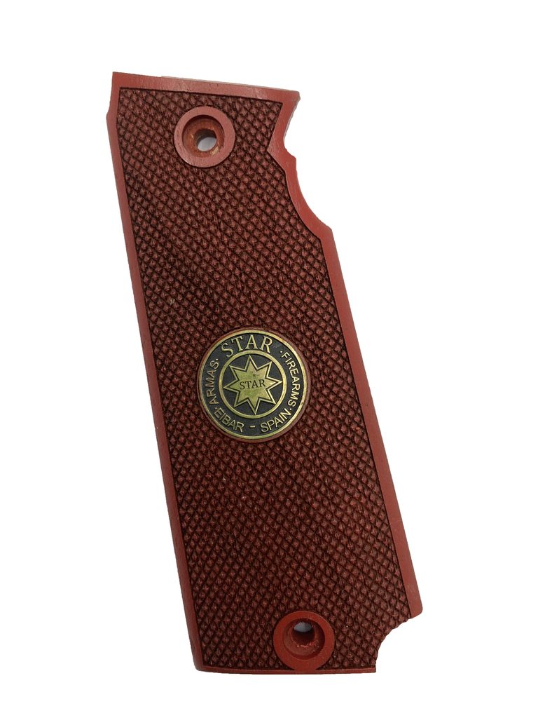 Střenky tureckého výrobce KSD pro Star Super B v provedení červeně barvený ořech s bronzovým logem.