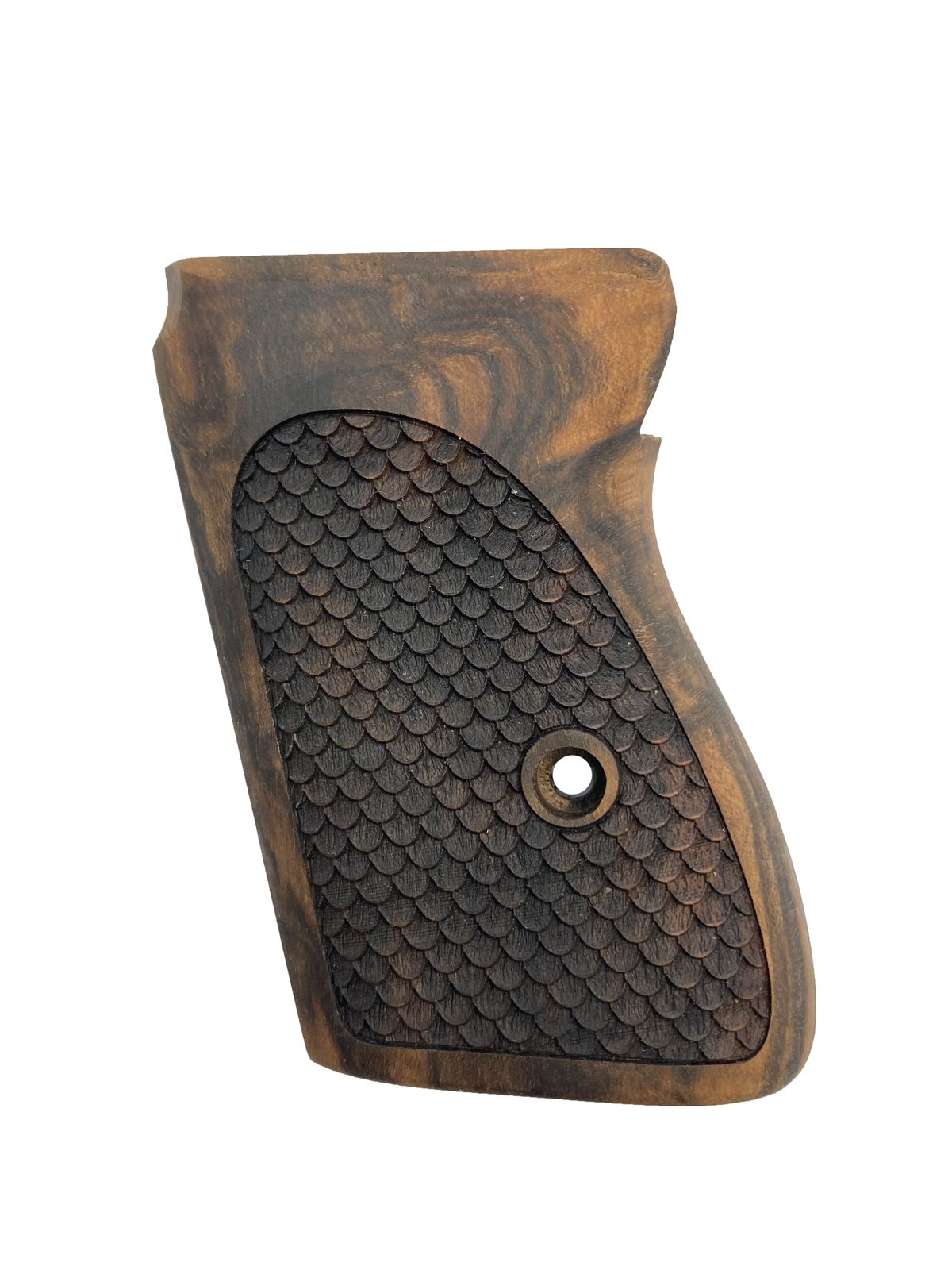 KSD rukojetí z tvrdého dřeva obsahuje oslnivou řadu exotických dřevin a vzorů, z nichž každá je jedinečným uměleckým dílem a jemným řemeslným zpracováním. Každá rukojeť je upravena dle požadavků: hladký leštěný povrch nebo zdrsněný povrch. Vaše rukojeť bude vyrobena z ušlechtilého tvrdého dřeva, které má vytvořit přirozené spojení mezi vámi a vaší oblíbenou zbraní.