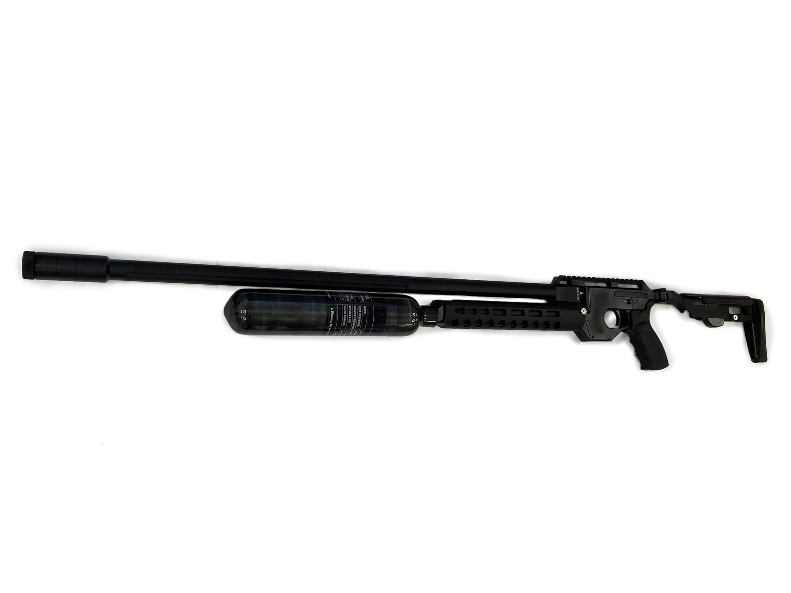 Plnění kartuše je klasicky quickfillem až do tlaku 300 BAR. Hlaveň má délku 700 mm a je zakončená moderátorem hluku se závitem 1/2 UNFx20.