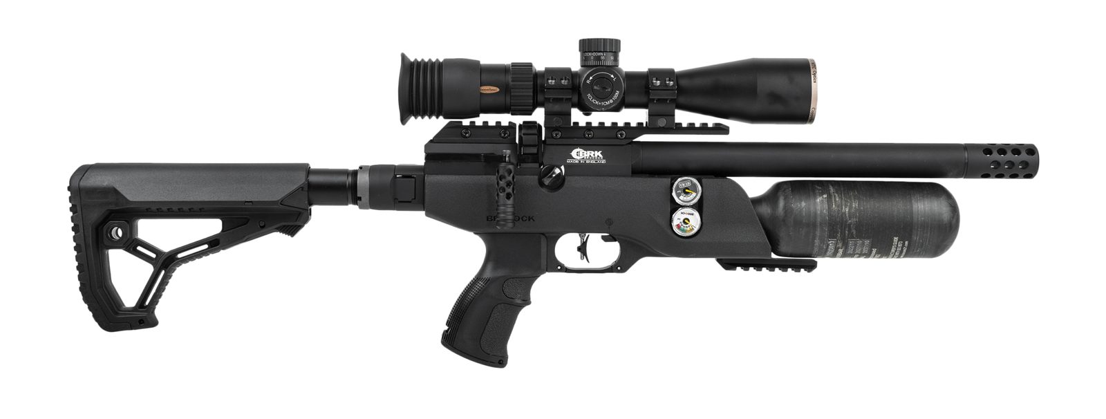 Taktická vzduchovka BRK Pathfinder HiLite XR v černém provedení s kevlarovou kartuší a sklopnou pažbou s pistolovým úchopem těží také ze vzájemné spolupráce (Daystate a BRK). BRK Pathfinder HiLite XR Brocock má vylepšený patentovaný systém „Slingshot Hammer“, který zajišťuje lepší dávkování vzduchu a nižší spotřebu. Tento systém spolu s regulátorem tlaku nizozemského výrobce Huma a vylepšuje konzistenci střel vzduchovka je daleko přesnější jako konkurence.