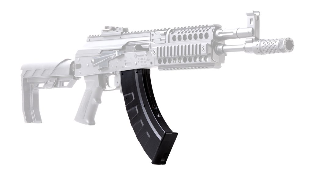 Zásobník Crosman AK1 full auto 4,5mm pojme celkem 25 ocelových BB broků a dvě CO2 bombičky.